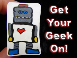 • Flickr has group photo pools called Geek Craft, geek chick and Freak&Geek with several photos of nerdy handicrafts, many of which are made with polymer clay.