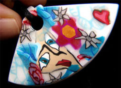 When my Mom first saw this face cane pendant, she was crazy about it. She told me she wished it were hers. She loved the ‘artyness’ of it, and she could not imagine how I was able to make it with just a few blocks of clay.