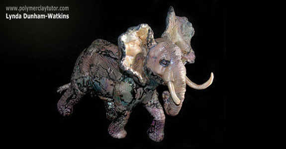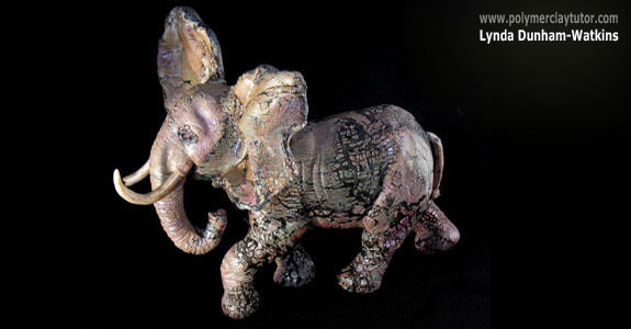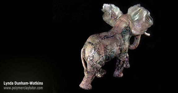 Faux Raku Elephant by Lynda Dunham-Watkins
