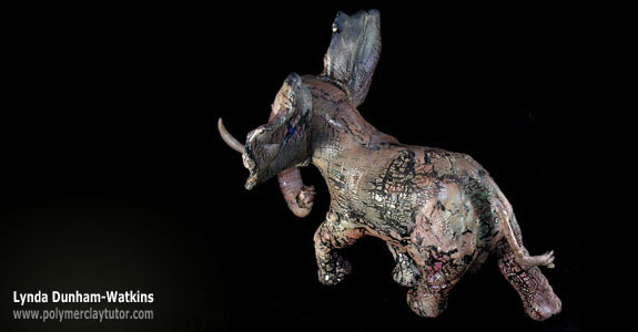Lynda Dunham-Watkins is an accomplished mixed media artist who makes art dolls and animal sculptures. She became a member of the PcT Library to enhance her polymer clay skills.