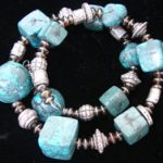 Some polyclay techniques are just so darn fun…  Like making turquoise faux jewelry beads, for example. In this project, you’ll need some Fimo or Premo clay; black plus brown acrylic paint; and sand. As you can see in the photo, I’ve made a bracelet, but the following techniques also work great for making necklaces, earrings and brooches too.