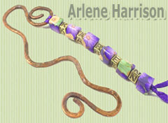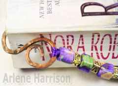 Arlene Harrison is our Spotlight Feature Guest today. She sent in photos of her beautiful hammered copper bookmark, inspired by lessons and tutorials presented here at the blog. The blog article reference links include: (1) Hammered Copper Findings; (2) Hookmark; (3) Beaded Bookmark; and (4) Hammered Copper Jewelry