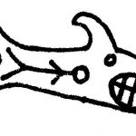 It’s not really so much a cave, as more really just a chunk of concrete in the back yard. I do like the grin the whale has after eating the stick-man… a kind of pleased with himself look!