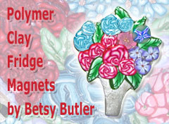 For her refrigerator magnets, Betsy combines thin slices of decorative polymer clay canes to create flower bouquet designs that would look beautiful in any kitchen.