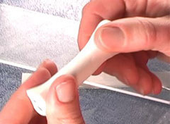 6) You can stick the end of your cane to your smooth work surface and use the flat palms of your hands to push on opposite sides of your cane at the same time. Turn the cane a 1/4 turn and press again. Keep turning and pressing evenly to get the cane to lengthen. Flip the cane periodically to keep the reduction even. This flipping action also minimizes the distortion and waste on the ends of the cane.