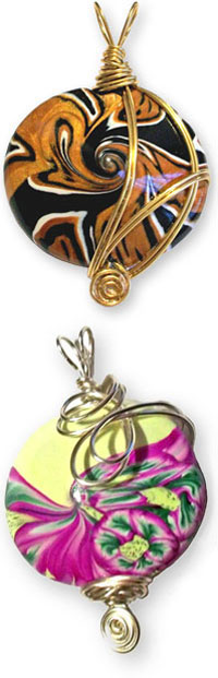 Love your sliced cane swirl beads, and the wire wrapping is fantastic. I am hoping to learn how to wire wrap soon. I took one class in that but forgot how to go about it. The spliced cane is one of my favorites…it is the easy cane and the colors are just amazing! Yours are beautiful! And yes, I agree, it is therapeutic. I am a caregiver for my father-in-law and I am pretty much home…so working on polymer clay is a way for me to escape and not think about anything but that!