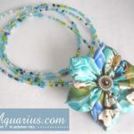 This Flower-on-a-Necklace pendant is a beautiful example of Elaine Robitaille’s detailed polymer clay jewelry. Specializing in making flower canes and millefiori beads, she sells her work on Etsy as well as at bead and craft shows.