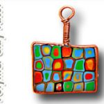 To make the copper bezel for the pendant in the picture above, I hammered a section of 14 gauge electrical copper wire (plastic coating removed), as flat as it would go. This flattened copper was then bent into a rectangle shape to fit around a thick cane slice from one of my mod polymer clay canes.